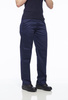 Spodnie posiadają półelastyczne wykończenie pasa.
