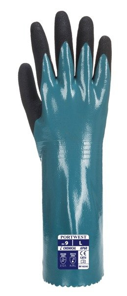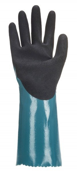 Rękawica nitrylowa z piaskowym pokryciem wewnętrznej części dłoni.