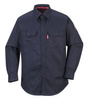 Koszula posiada zapięcie na guziki, dwie kieszenie z patkami na klatce piersiowej i kołnierzyk.