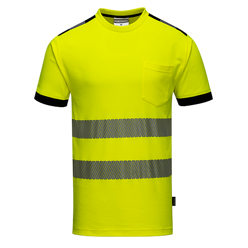T-shirt wykonany z użyciem pasów odblaskowych klasy premium HiVisTex Pro oraz tkaniny Cotton Comfort.