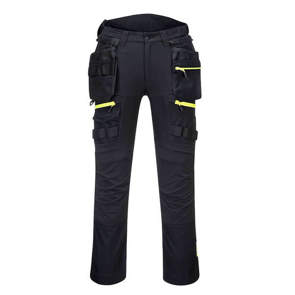 Damskie spodnie robocze DX4 z odpinanymi kieszeniami zostały specjalnie zaprojektowane i wykorzystują 4 kierunkowy stretch, aby zapewnić maksymalny zakres ruchów podczas pracy. Posiadają wysoki stan w pasie z tyłu i są elastyczne z boku zapewniającą ochronę we wszystkich pozycjach roboczych. Potrójne szwy zapewniające maksymalną trwałość.