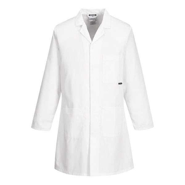 Fartuch roboczy z zapięciem na napy ukryte pod listwą. Posiada dwie duże kieszenie dolne i kieszonkę na klatce piersiowej. Wykonane z naszej wytrzymałej tkaniny poliestrowo-bawełnianej Kingsmill.