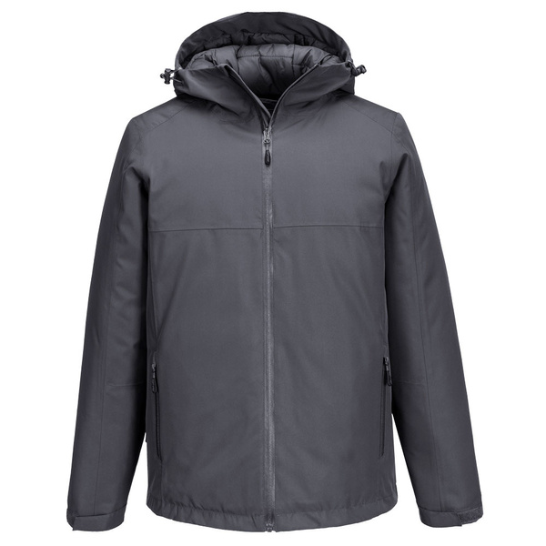 Wodoodporna i ocieplana kurtka męska zapewniająca ochronę przed deszczem i suchość przez cały dzień. Zaprojektowana z przegubowymi rękawami, aby zwiększyć swobodę ruchów. Posiada regulowany kaptur techniczny oraz dostęp do nadruku.